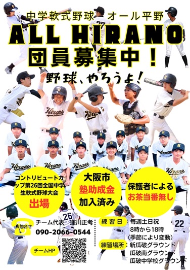 ※当チームは、「塾代助成金対象事業」登録チームです。(申請者は部費が免除) 詳しくは、「選手募集(入団案内)」ページをご覧ください。